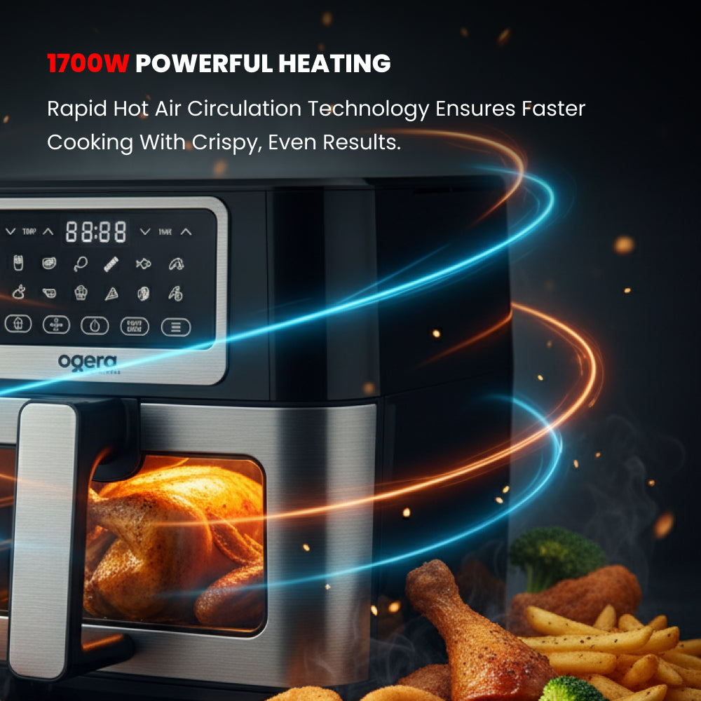 Ogera OG8503AF Digital Air Fryer, 7.6L XXL Capacity, 1700W Rapid Hot Air Technology, Touch Control with LED Display, Adjustable Temperature & Timer, Oil-Free Healthy Cooking for Large Families
