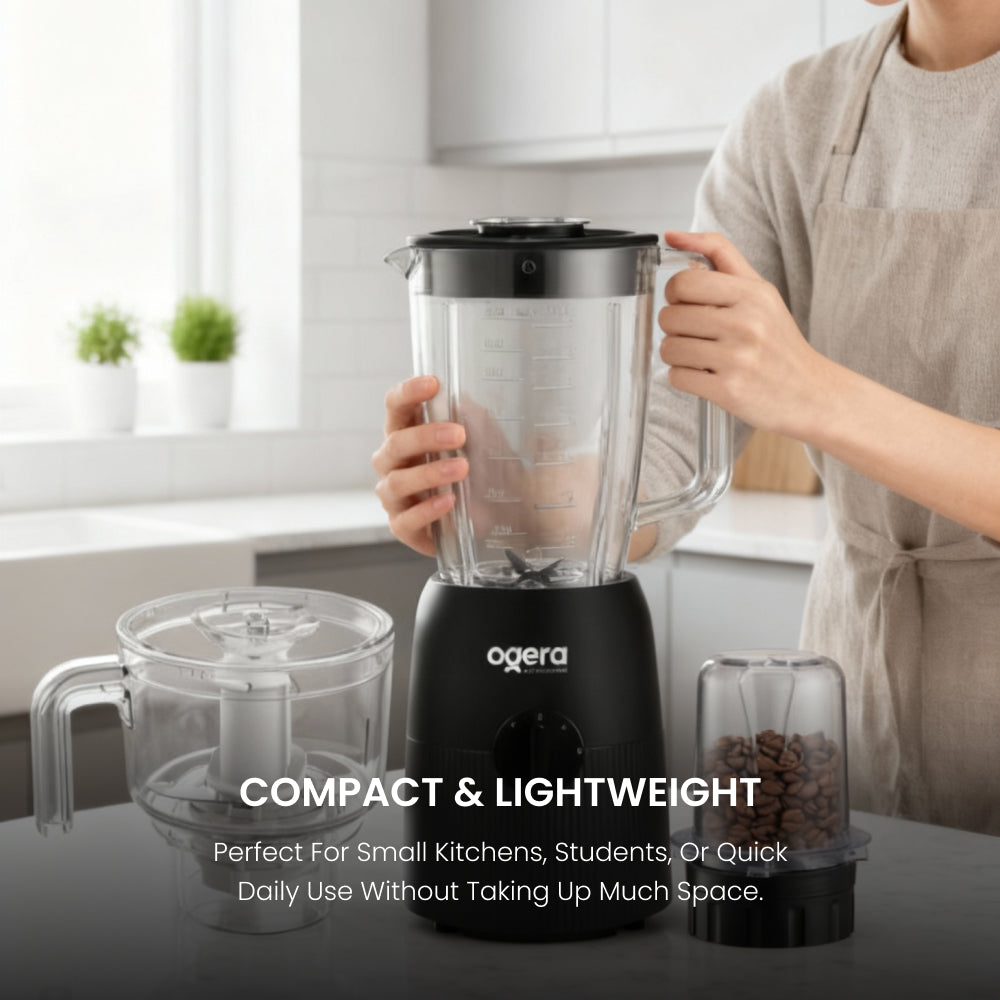 Ogera OG5102BR Electric Blender 3-in-1, 350W Compact Motor, Blender, Grinder & Chopper Functions, Stainless Steel Blades, Multi-Purpose Kitchen Appliance with Overload Protection